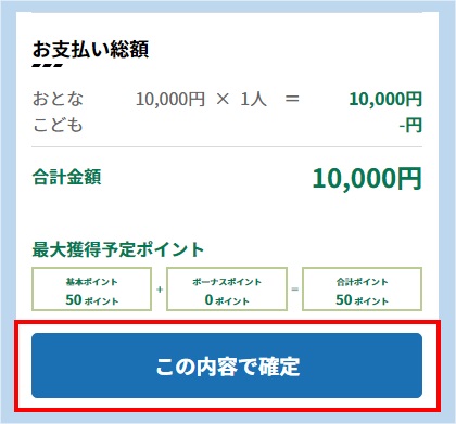 お支払い総額がお間違いないかをご確認の上、この内容で確定 をタップしてください。