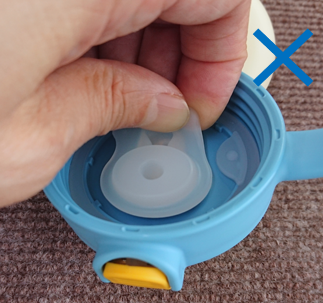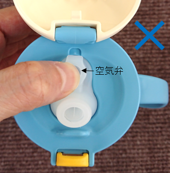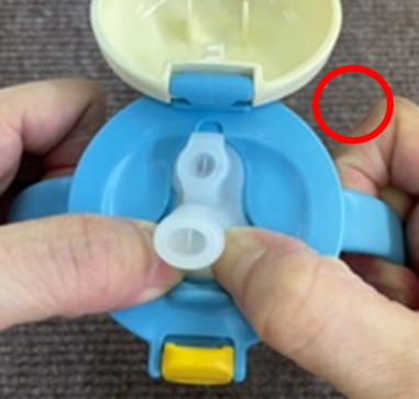 空気弁のあたりを押し込んだり、フタの裏側から飲み口の端を引っ張ると、