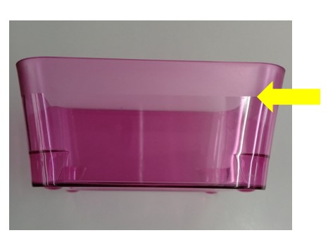外側から見ると、上の方が少し曇って見え、下の方は透明に見えます。その境目です。
