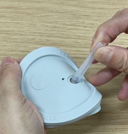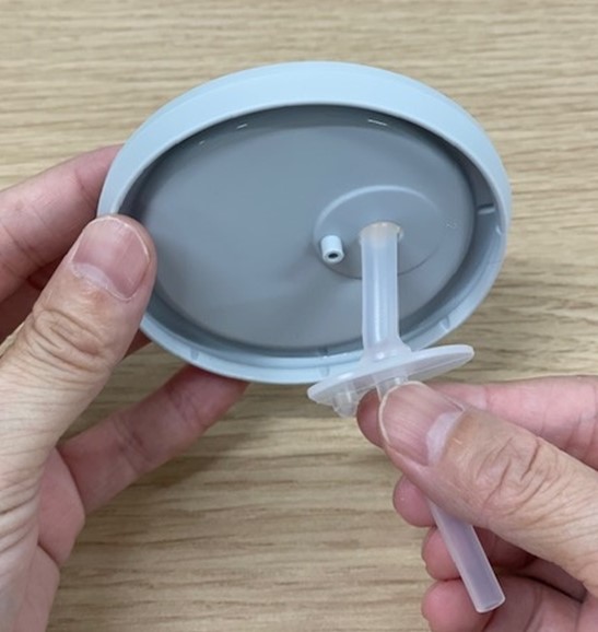 太い先端をフタの裏側から差し込んでください。