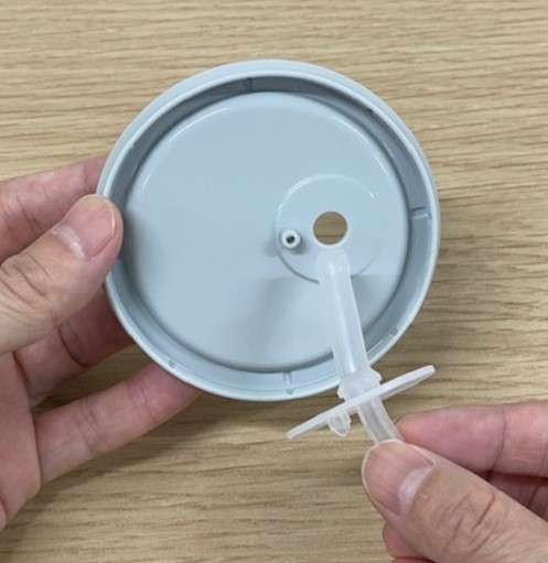 2 太い先端をフタの裏側から差し込んでください。