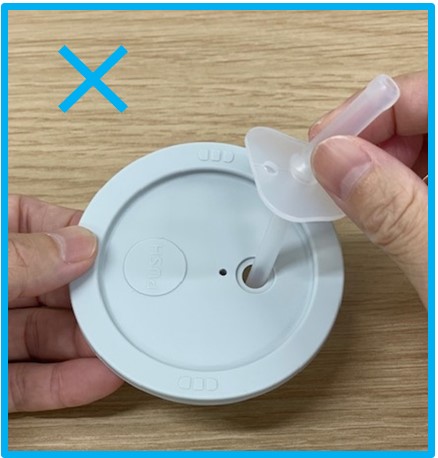 ストロー飲み口の細い先端をフタの表側から差し込んでいませんか。