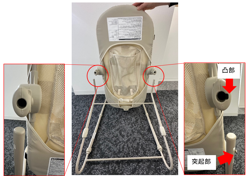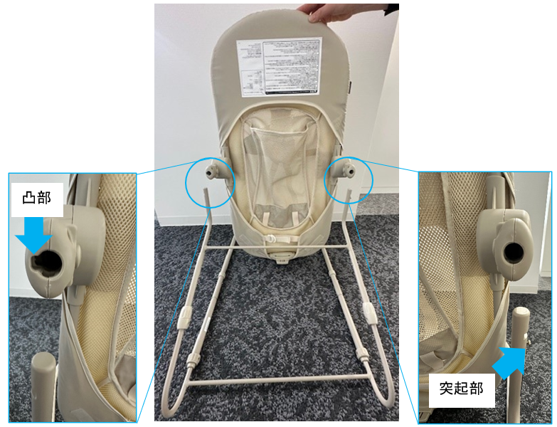 本体フレームの穴の凸部とフレームBの突起部が合うように、取付けの向きを確認してください。