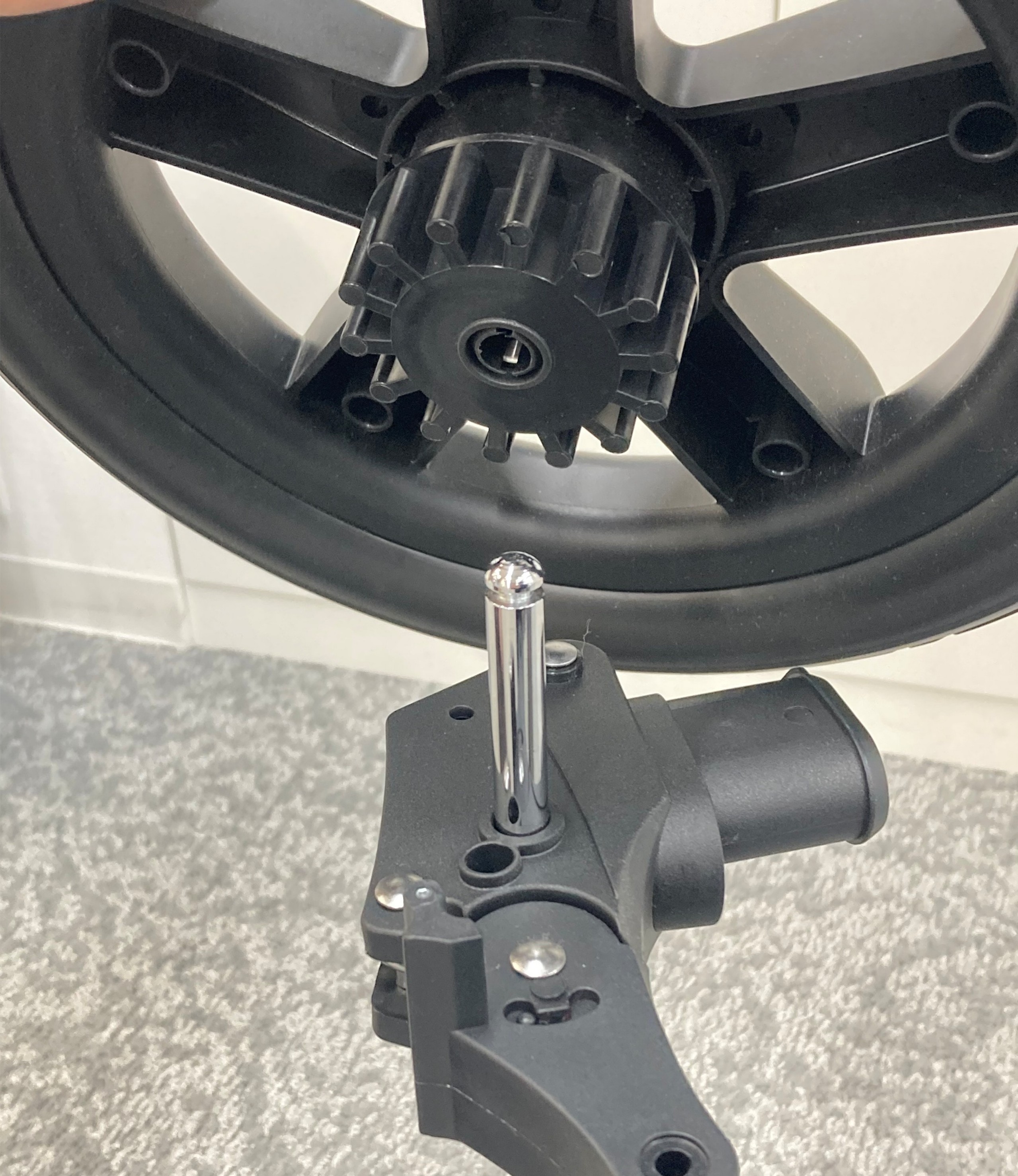 ②後輪中央部の丸ボタンをカチッと音が鳴るまで押し込んでください。