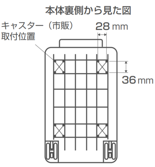 取付サイズ:幅28×奥行き36(mm)推奨キャスター