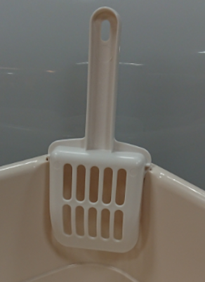 フードなしのネコトイレF60と本体を兼用しており、本体のみで使用する場合にスコップを差し込むためのものです。