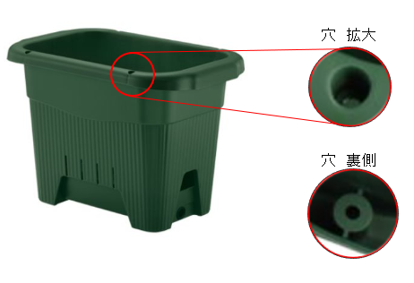 ただし、別売りの  菜園上手 63型・深50型用 支柱留め具 菜園ポット用 支柱留め具 、  かんたん虫よけセット(45型のみ対応)を使うと、縁の穴を使わなくても支柱の固定や虫よけが簡単にできます。