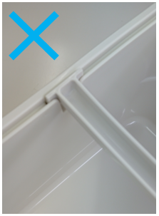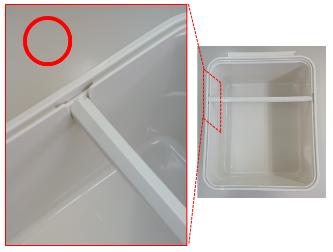 すり切り棒が押し込まれていなかったり、すり切り棒の向きが違うとパッキンがはめられずフタがしまりません。