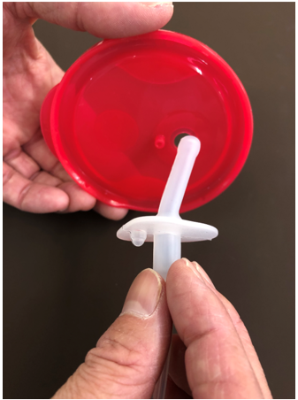 2 お子様が口にする飲み口の先端をフタの裏側から差し込んでください。